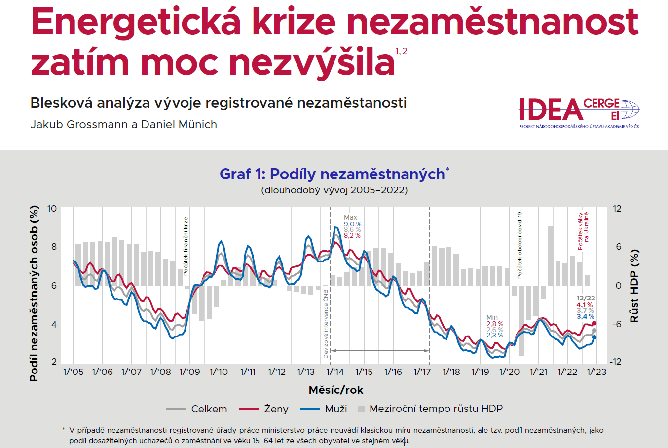 nejnižší v celé EU27. Rozdíly v míře nezaměstnanosti žen a mužů se v posledním roce znatelně zvýšily. Profesní, vzdělanostní a věkové rozdíly přetrvávají. Energetická krize dosud neměla výraznější dopad nejen na nezaměstnanost,
