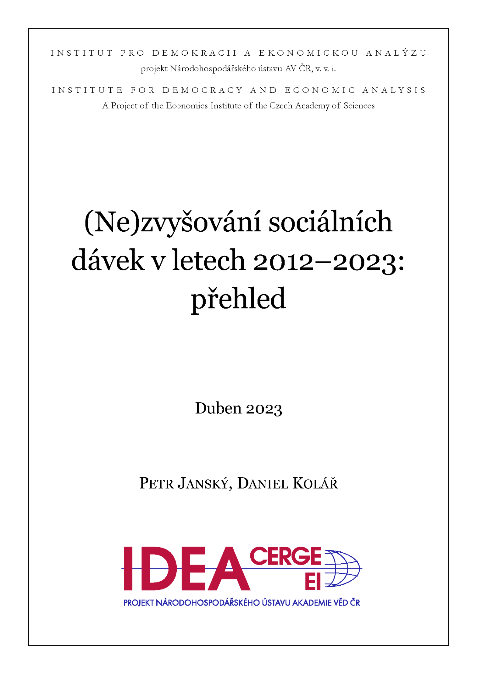 Nová studie „(Ne)zvyšování sociálních dávek v letech 2012–2023: přehled“ sleduje vývoj růstu sociálních dávek v posledních deseti letech v porovnání s vývojem inflace, průměrných mezd a starobních důchodů. Odpovídalo zvyšování sociálních dávek ekonomickému vývoji nebo šlo o jen zdánlivé navyšování?